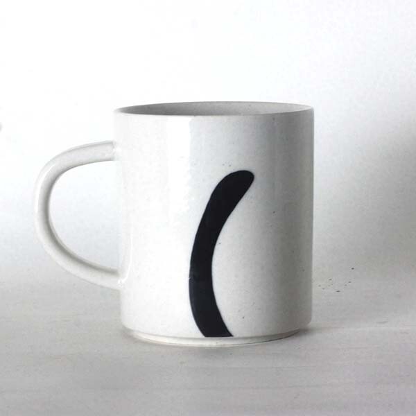 ※マグの後ろ側、尻尾の左下方に見える白い釉薬の垂れは卯の班「Unofu」です。ワラ灰を調合した光沢のある白濁釉です。「卯の斑」は釉薬のひとつで、古来から好まれ今に引き継がれた伝統的な釉薬です。